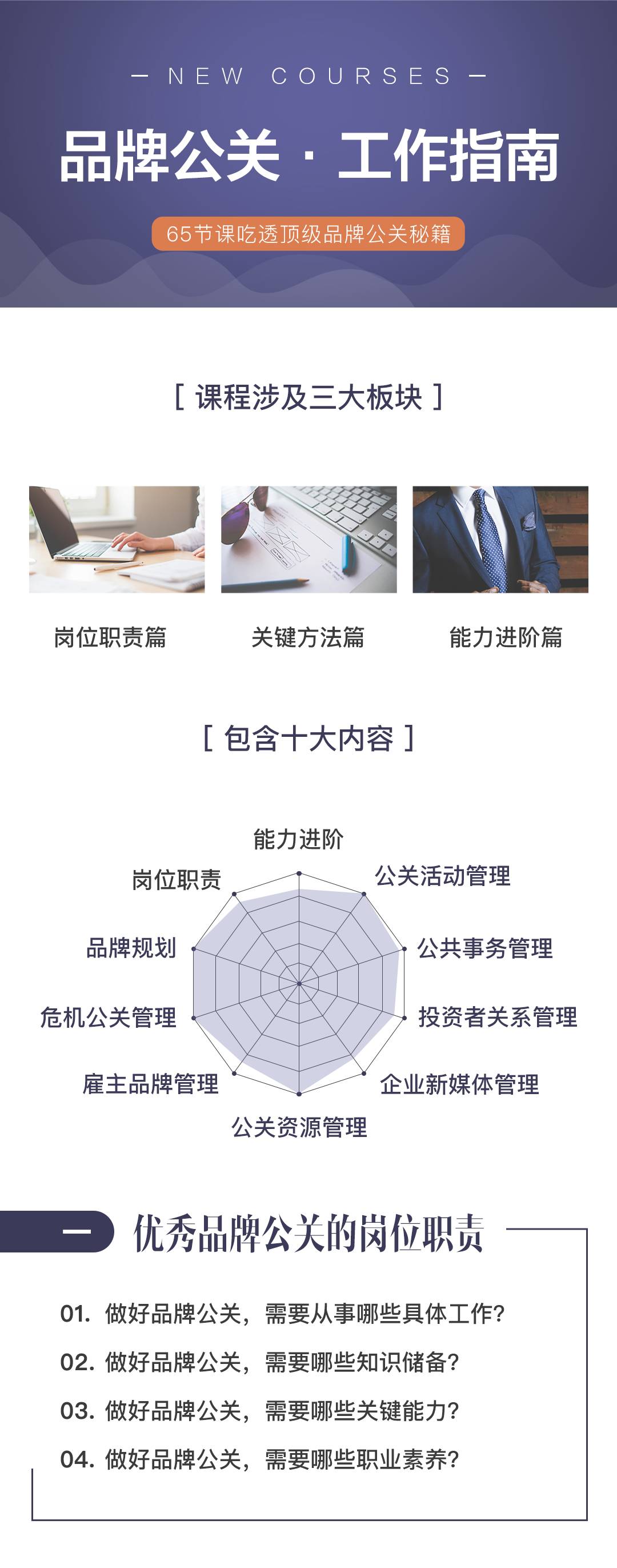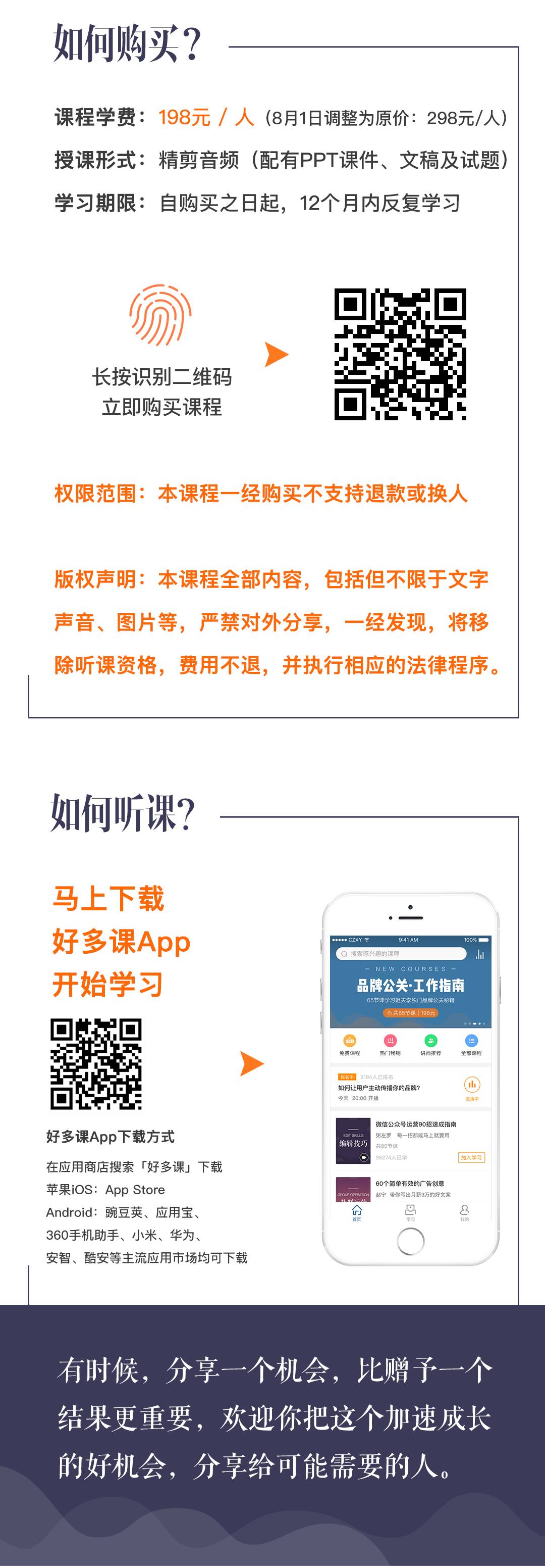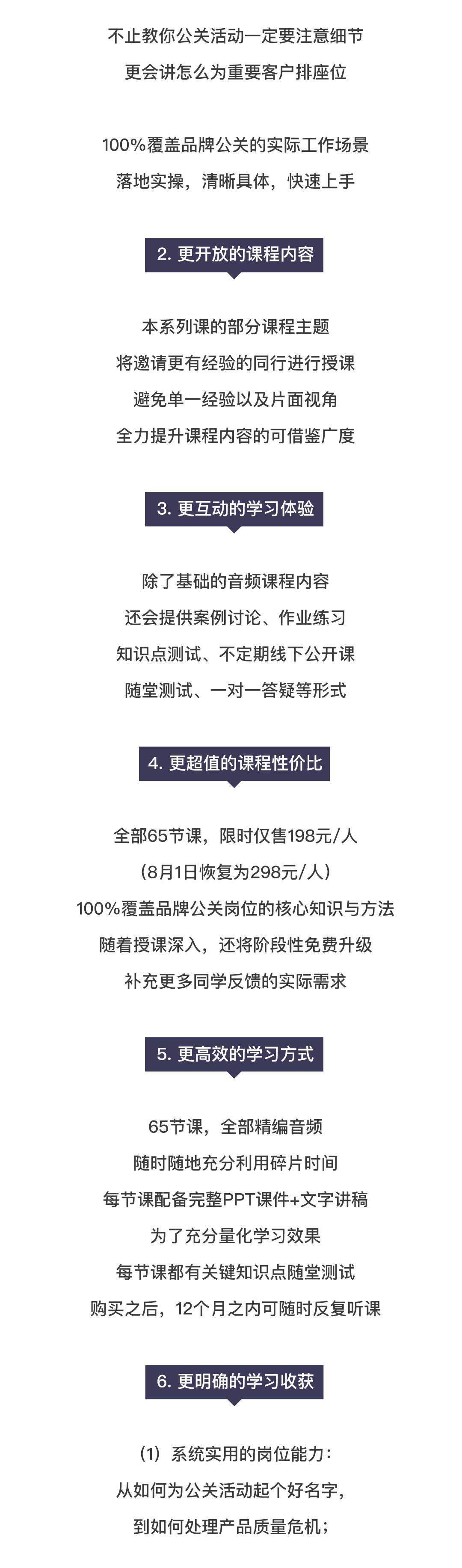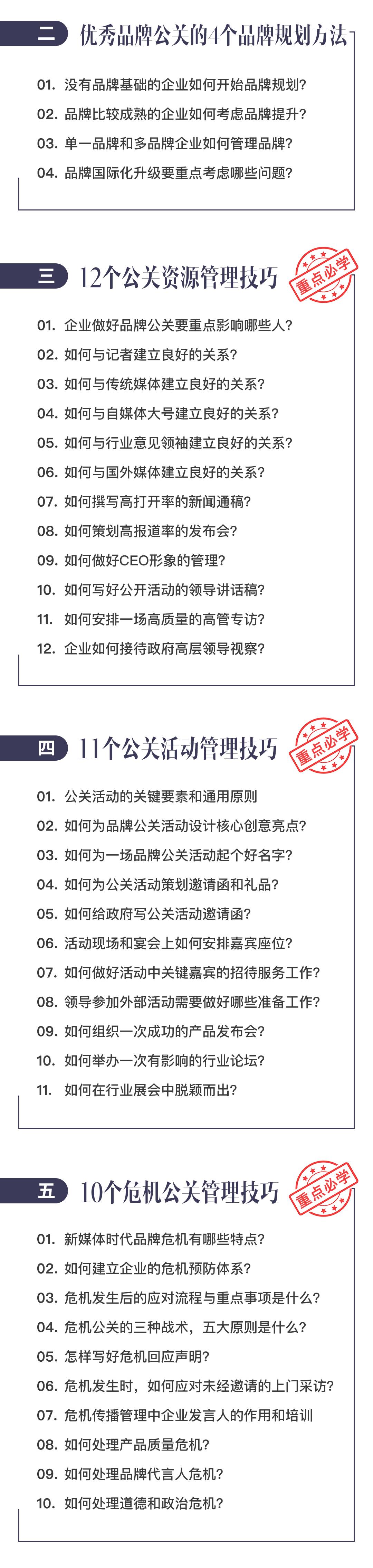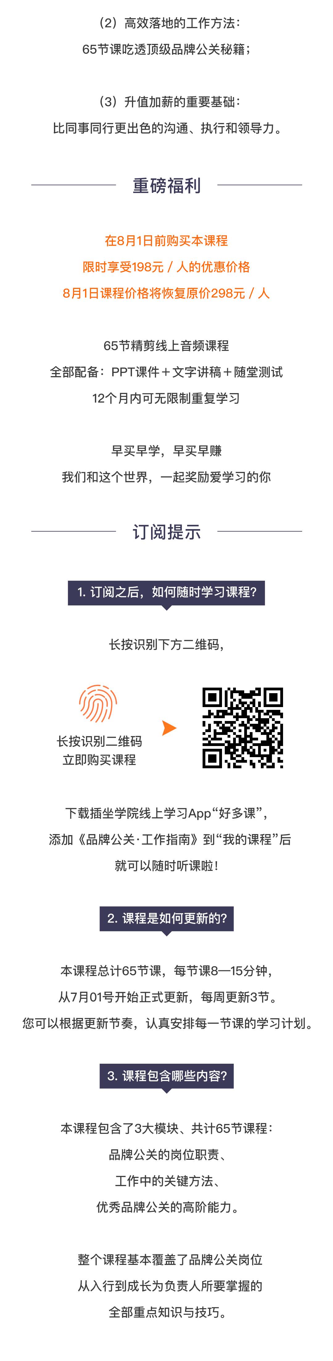 现在我把 20 多年的经验总结出 65 个关于品牌公关的基本技能,做成这个“品牌公关-工作指南”线上课程,从七月初开始每周推出三节课。