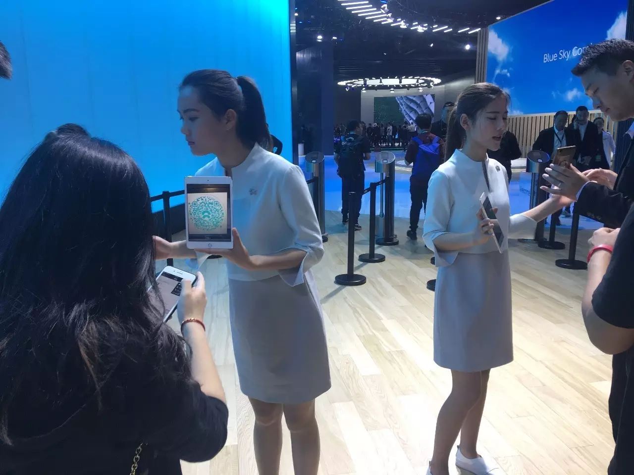 蔚来汽车的展台比较“过分”,两个工作人员举着iPad, 让观众扫二维码,凭对他们微信的关注再扫码进入展台。