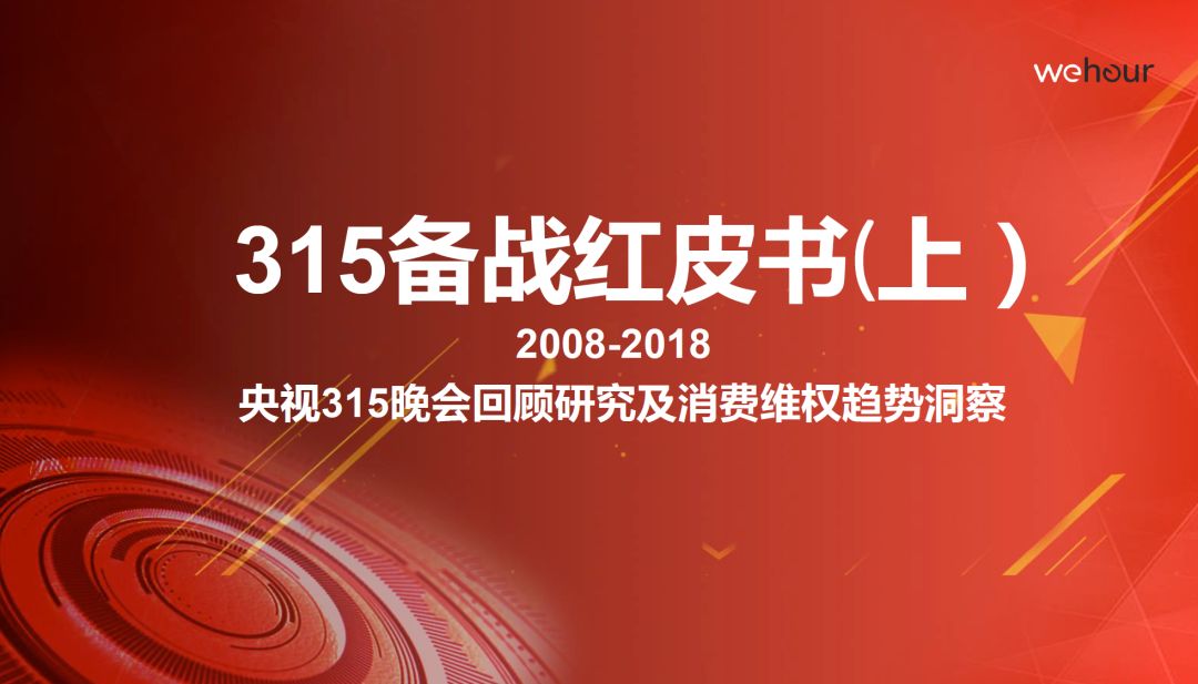 今年315国际消费者权益日之前,我和共享式咨询服务机构Wehour合作,发布了《315备战红皮书》,现在上篇可以免费下载。