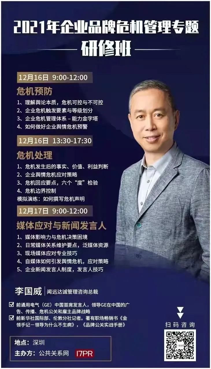内容参考自《跑赢危机:全媒体时代的公关自救指南》(作者李国威),文内略有删改,中信出版社2021年7月出版